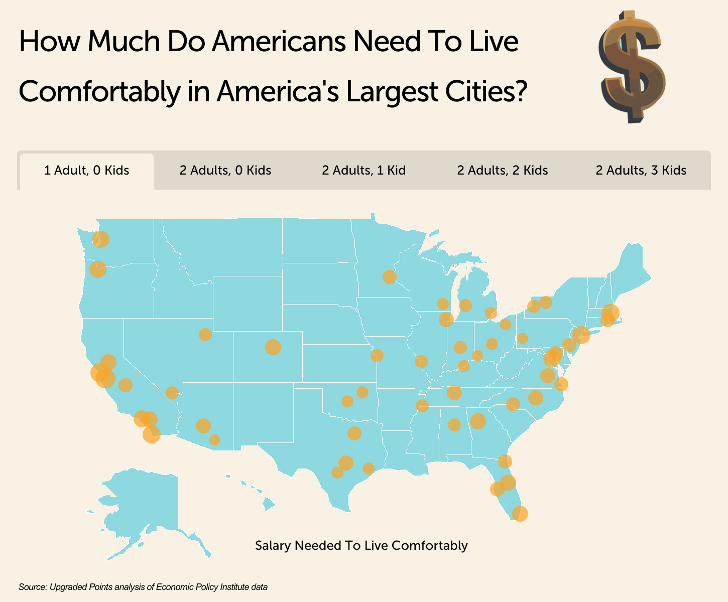 For complete results, see How Much Do You Need To Earn To Live Comfortably in Every U.S. City? [2025 Data Study] on Upgraded Points.